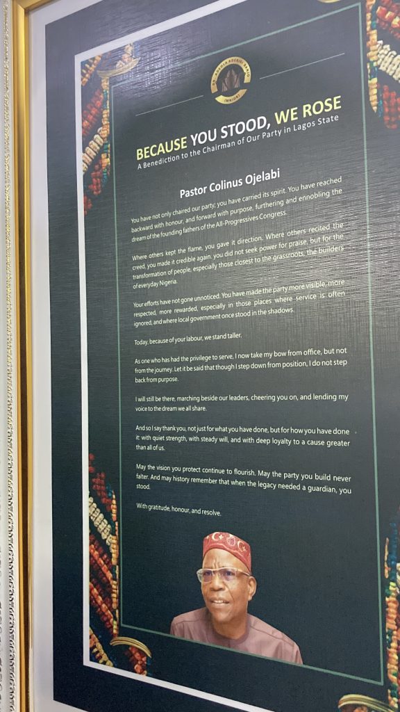 Where others merely kept the flame, you gave it direction. Where others recited the creed, you made it credible again. You did not seek power for applause, but for transformation — especially for those at the grassroots, the builders of everyday Nigeria. Because of your labour, we stand taller. Because of your example, we walk straighter.