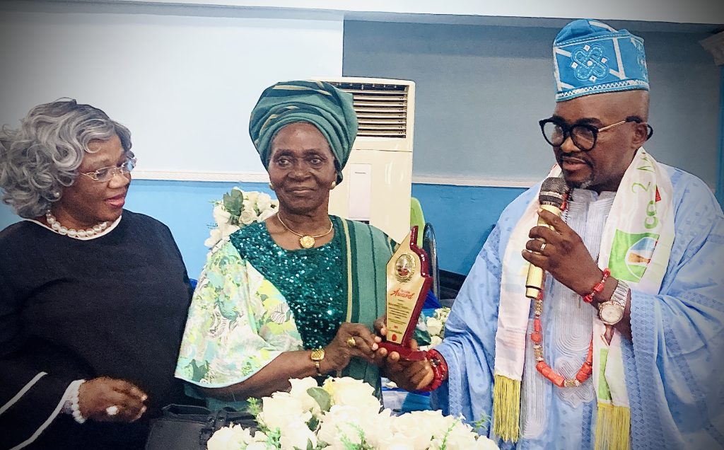 The President, Asiwaju Bola Ahmed Tinubu was recognized and presented with Excellence and Competency Award by Apostle Farmer Hon. Victor Olusegun Odunsi to Mrs O. O. T. Benson on his behalf.