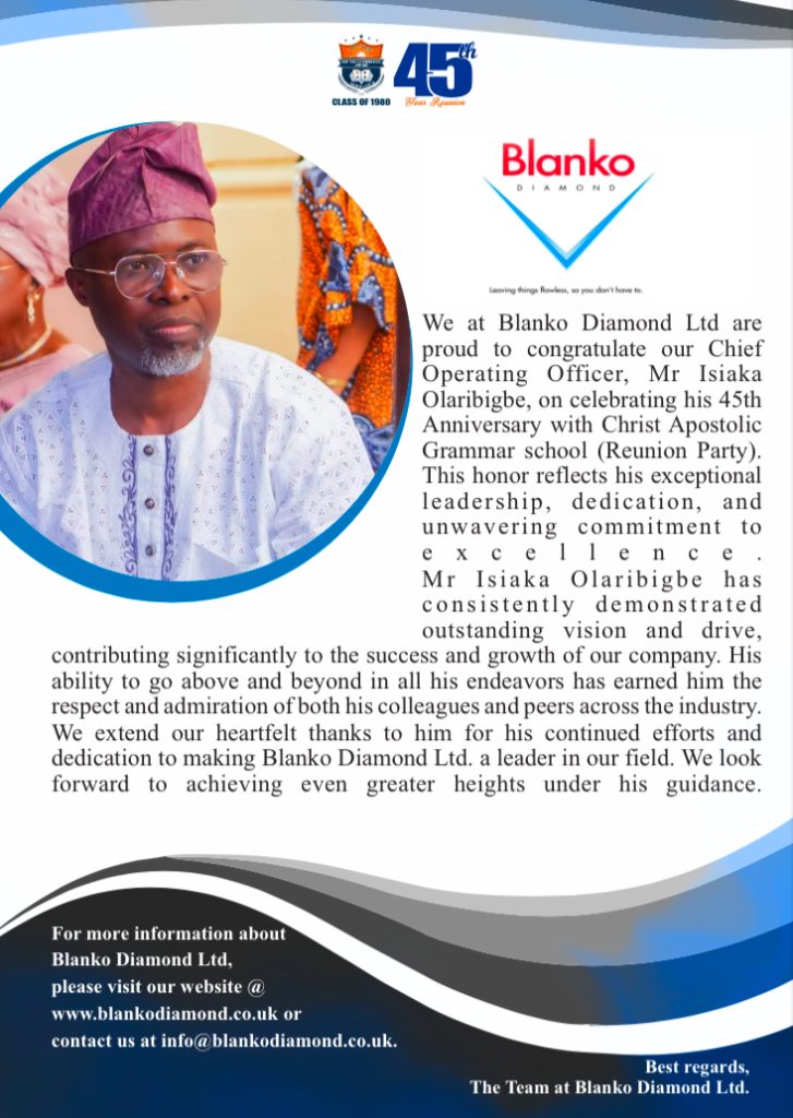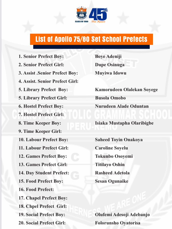 The 75/80 Christ Apostolic Grammar School Old Students’ Association (CAGSOSA) in Iperu Remo celebrated its 45th anniversary during a reunion at the Apollo Multi-Purpose Hall on September 27, 2025. The event aimed to promote the school and honor its alumni.